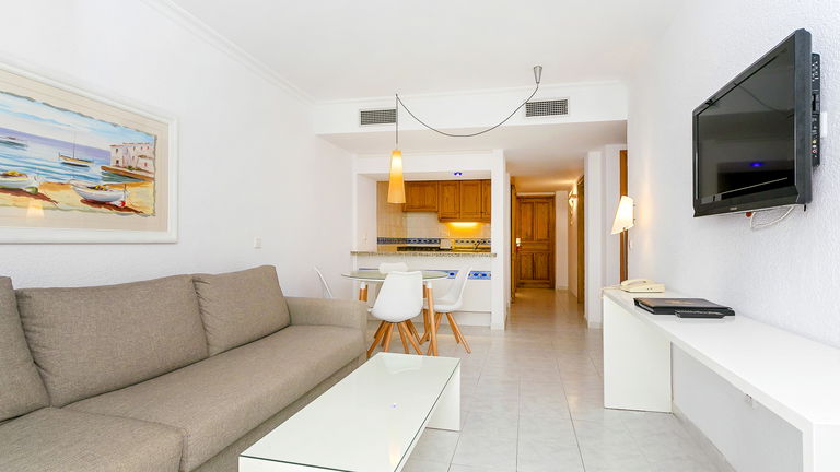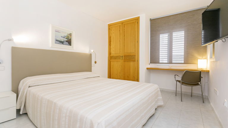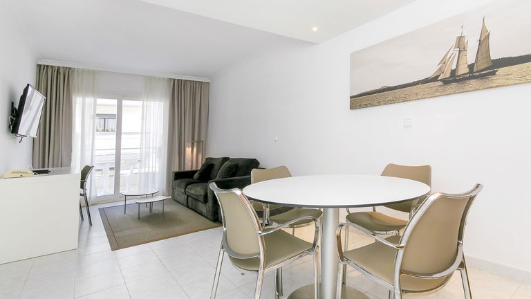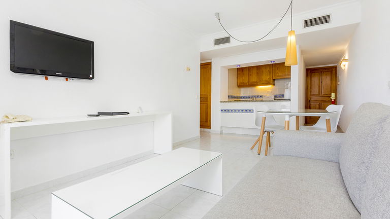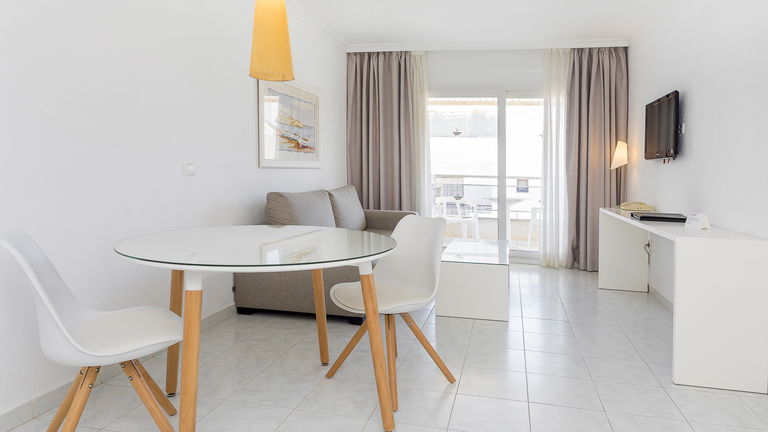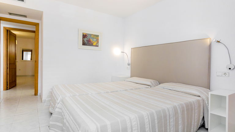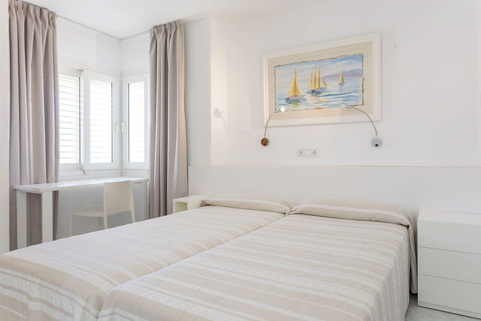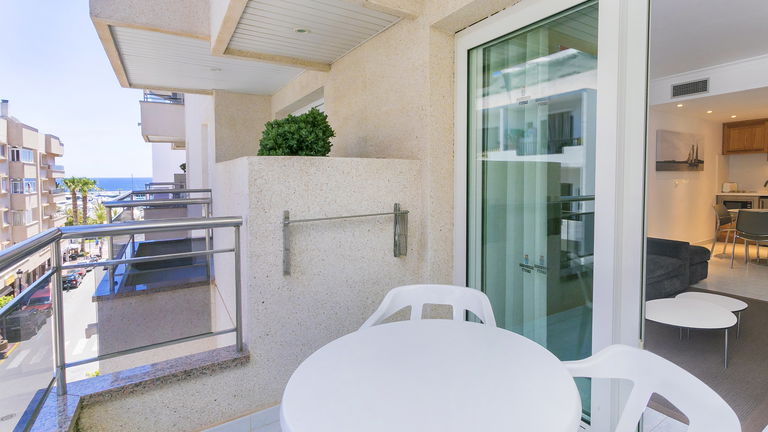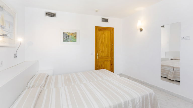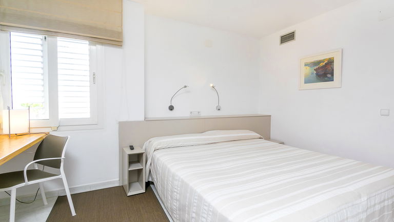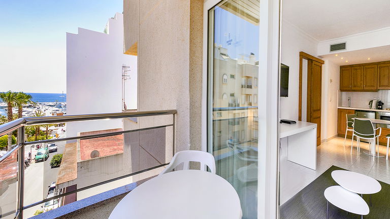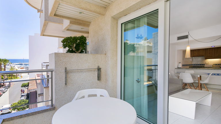 Para grupos de amigos y familias con niños que quieran disfrutar de espacios amplios. Apartamento de 45 m² de un dormitorio (2 camas separadas o cama de matrimonio, según petición), baño, salón con un sofá, cocina completa, comedor, terraza con vistas al puerto deportivo y al mar, caja fuerte, aire acondicionado/calefacción, TV de pantalla plana con satélite, teléfono, internet wifi gratis, servicio de limpieza diaria, nevera y amenities completos (gel, champú).