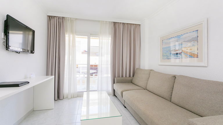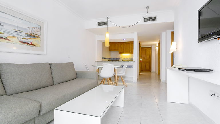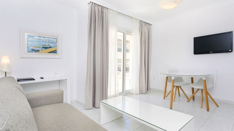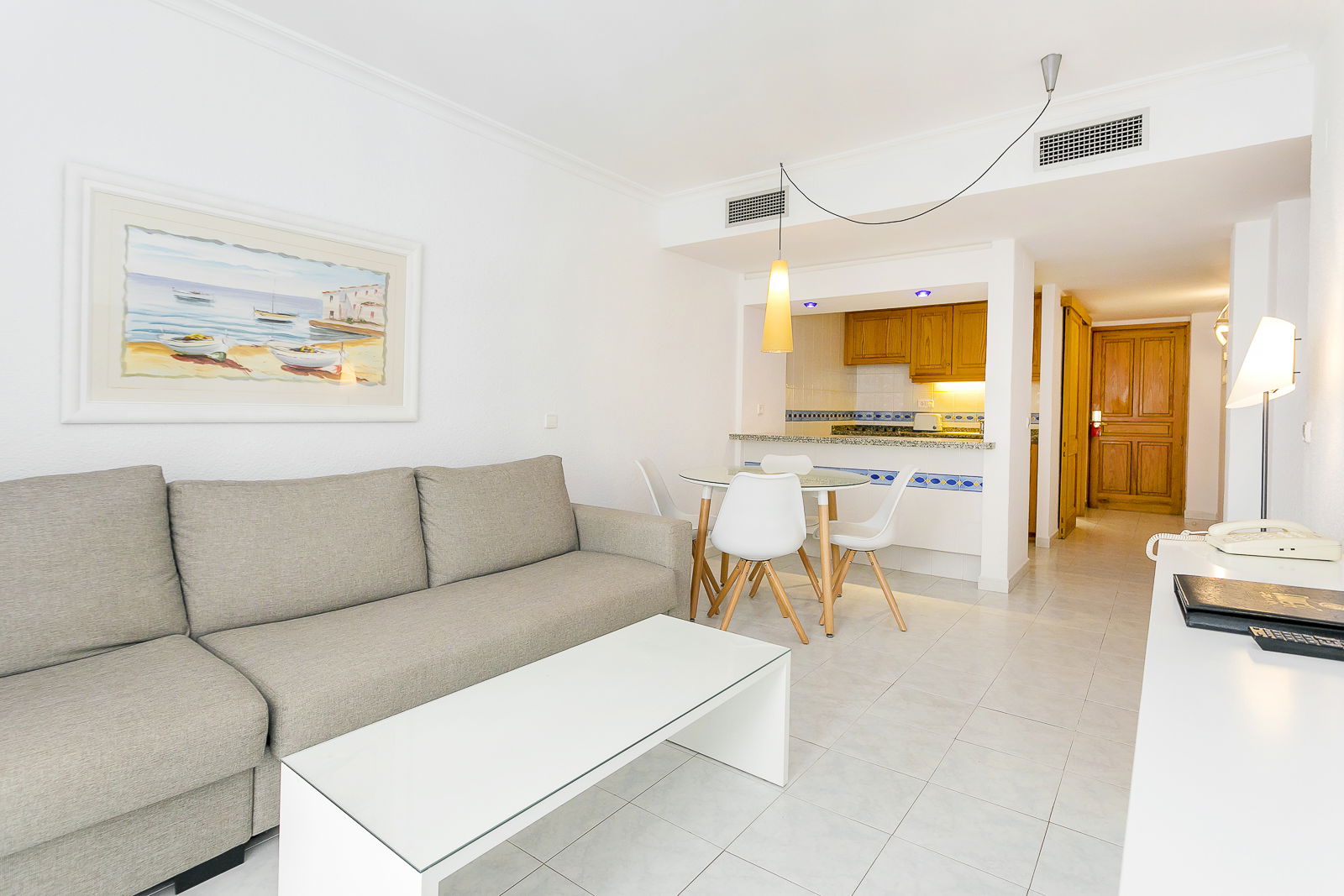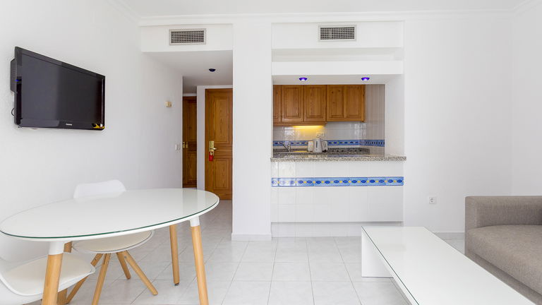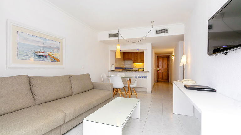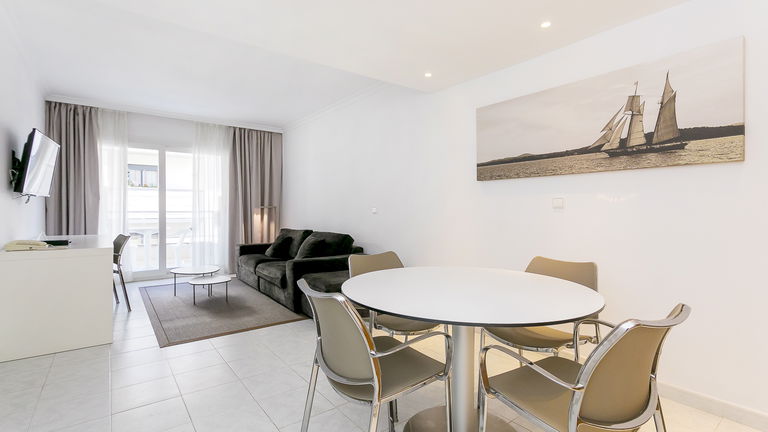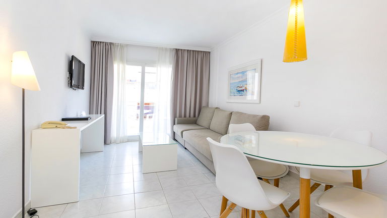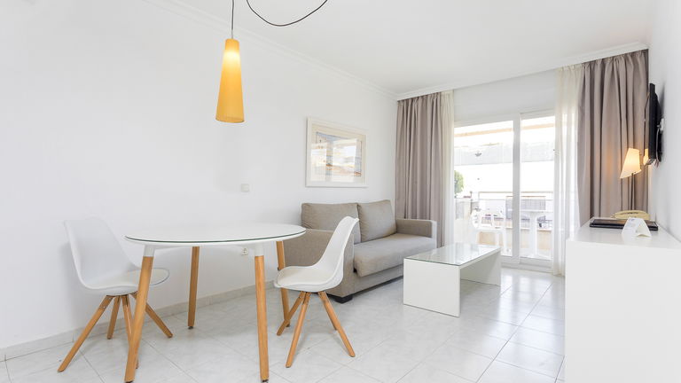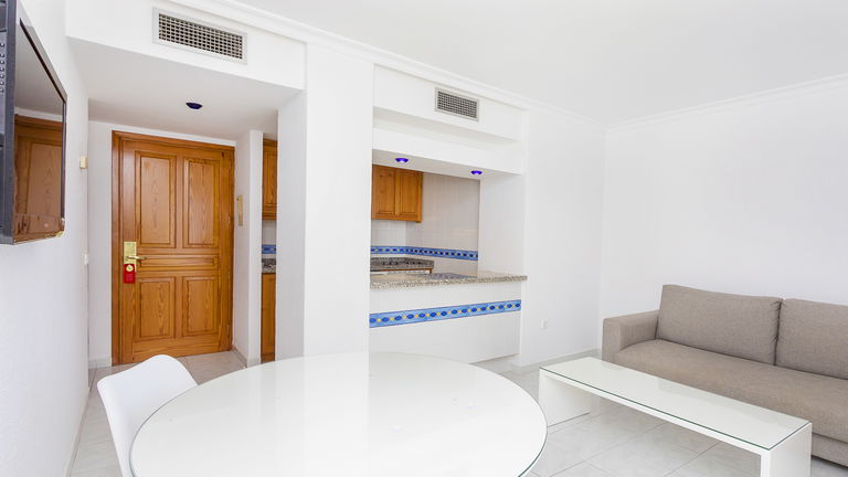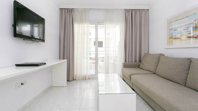 Para grupos de amigos y familias con niños que quieran disfrutar de espacios amplios. Apartamento de 45 m² de un dormitorio (2 camas separadas o cama de matrimonio, según petición), baño, salón con un sofá, cocina completa, comedor, terraza con vistas al puerto deportivo y al mar, caja fuerte, aire acondicionado/calefacción, TV de pantalla plana con satélite, teléfono, internet wifi gratis, servicio de limpieza diaria, nevera y amenities completos (gel, champú).