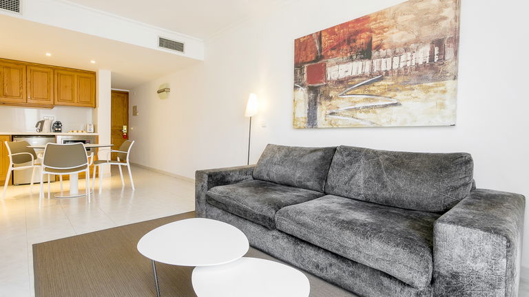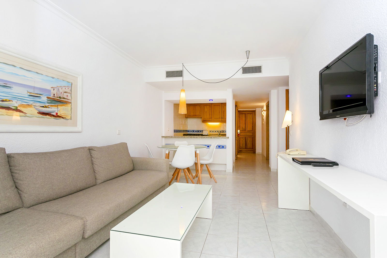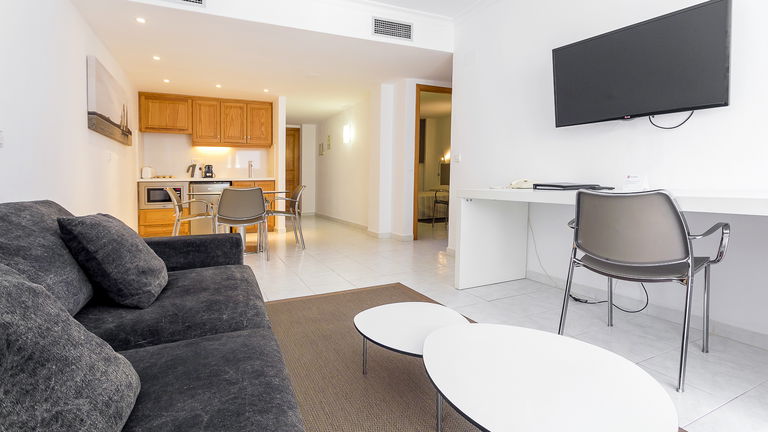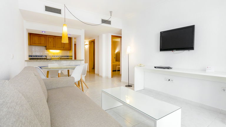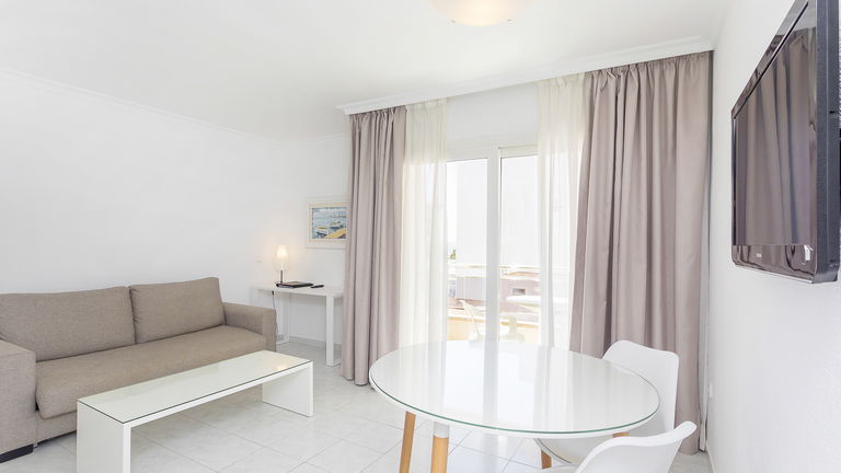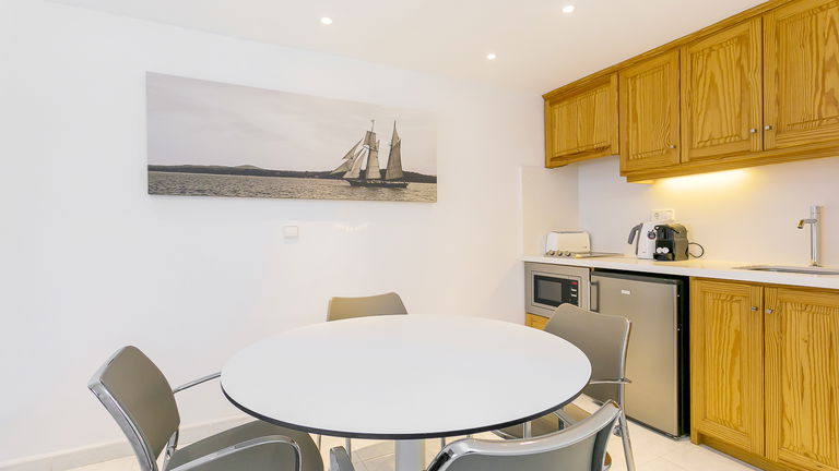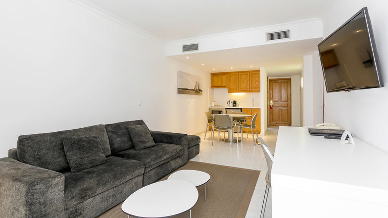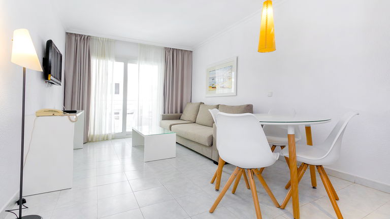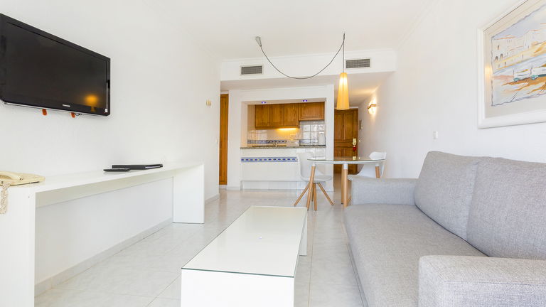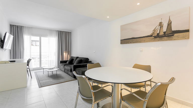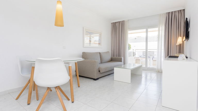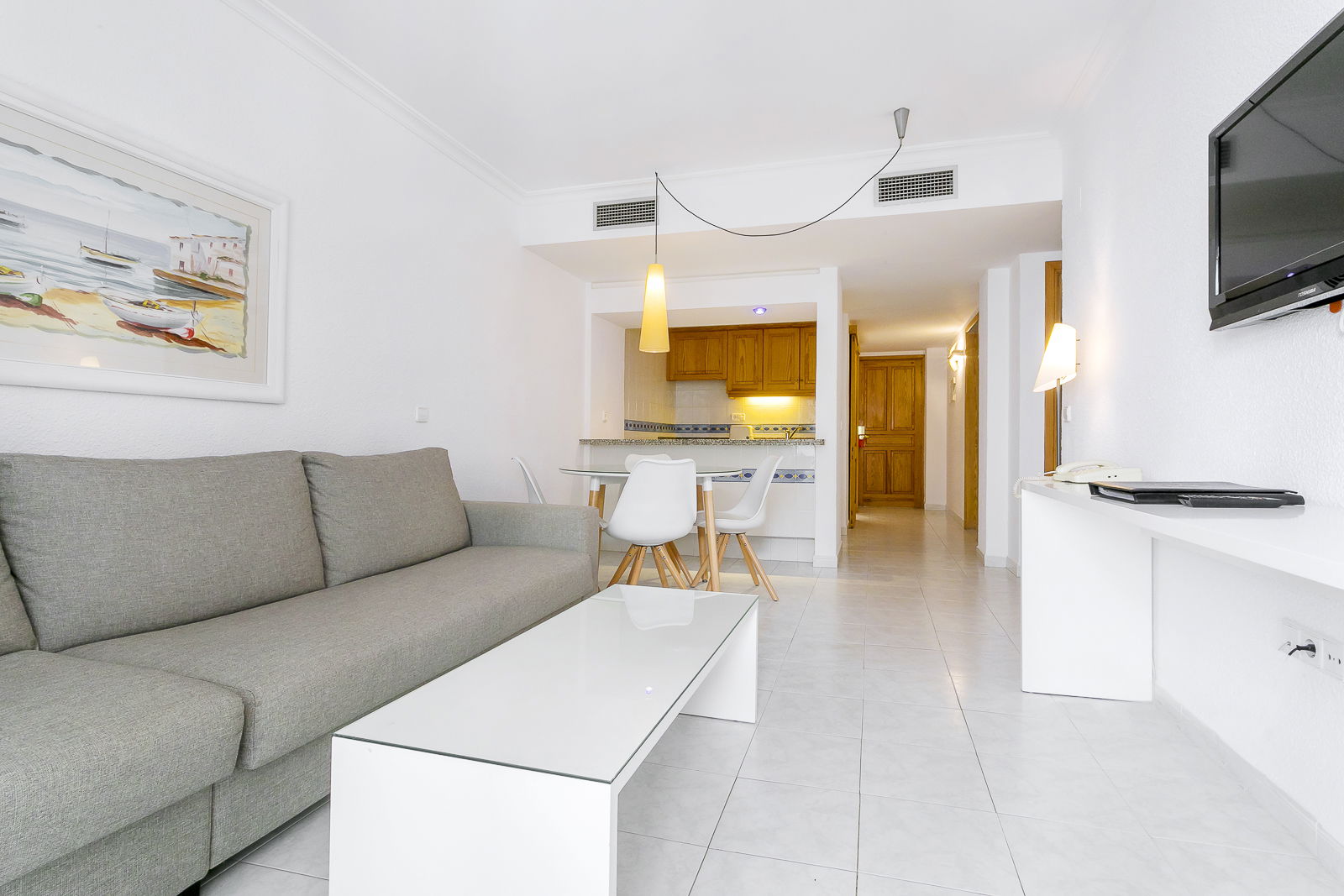 Para grupos de amigos y familias con niños que quieran disfrutar de espacios amplios. Apartamento de 45 m² de un dormitorio (2 camas separadas o cama de matrimonio, según petición), baño, salón con un sofá, cocina completa, comedor, terraza con vistas al puerto deportivo y al mar, caja fuerte, aire acondicionado/calefacción, TV de pantalla plana con satélite, teléfono, internet wifi gratis, servicio de limpieza diaria, nevera y amenities completos (gel, champú).