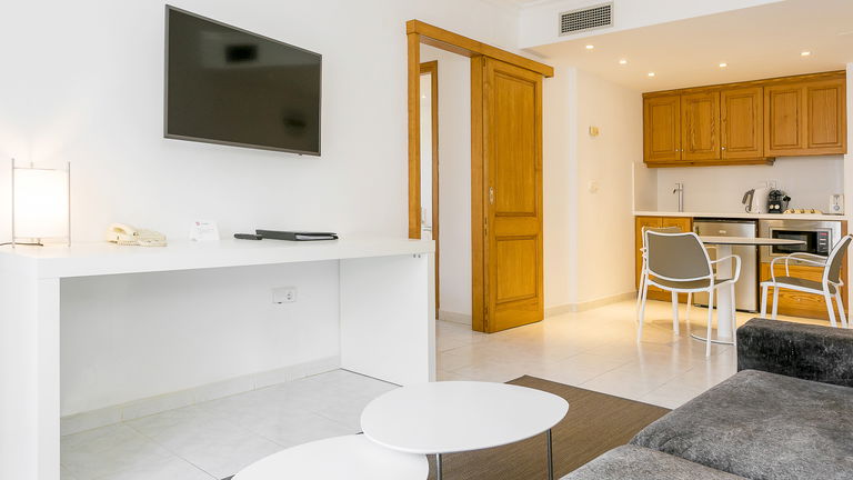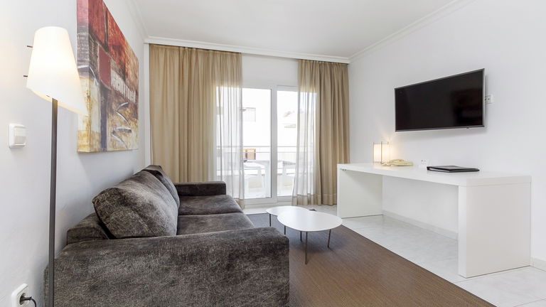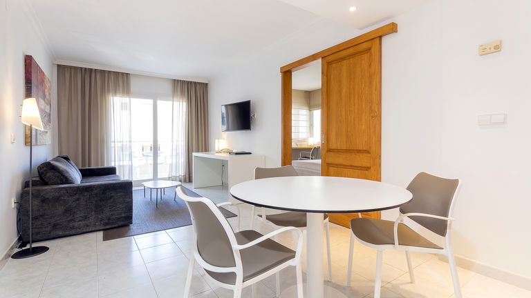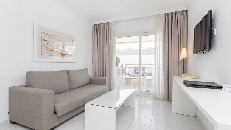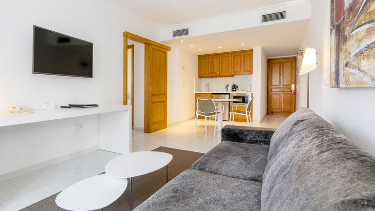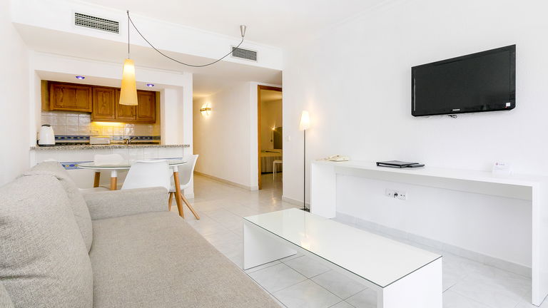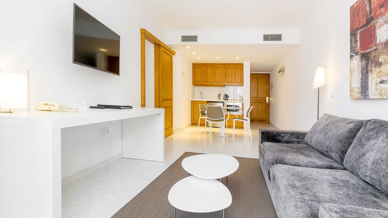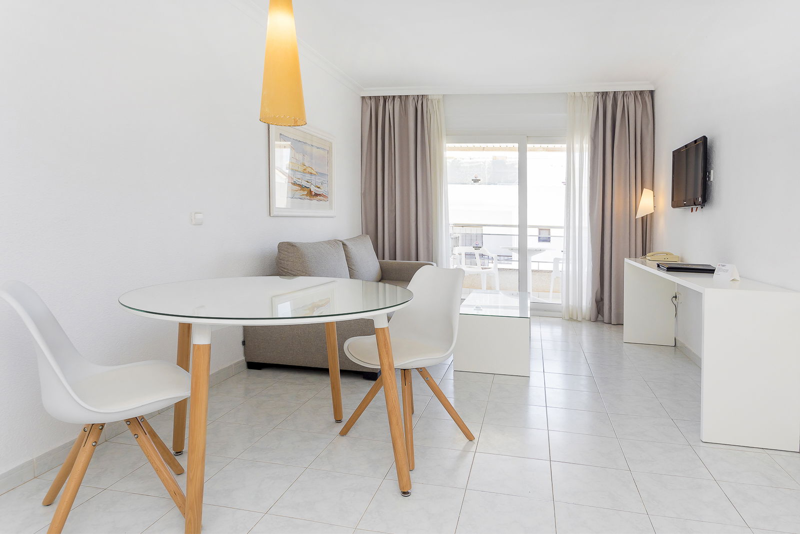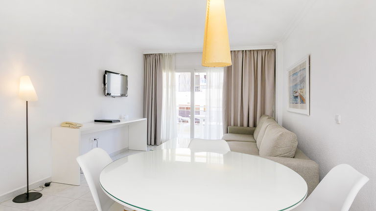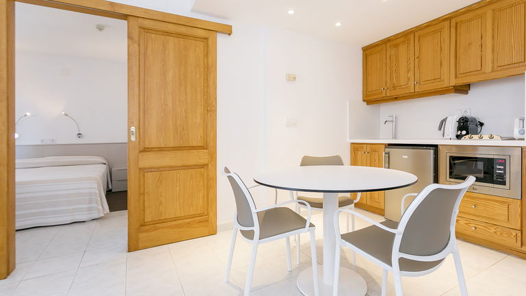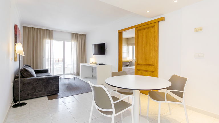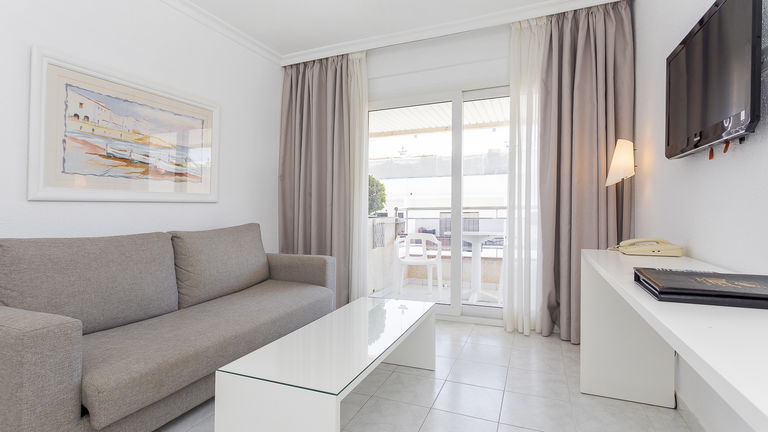 Para grupos de amigos y familias con niños que quieran disfrutar de espacios amplios. Apartamento de 45 m² de un dormitorio (2 camas separadas o cama de matrimonio, según petición), baño, salón con un sofá, cocina completa, comedor, terraza con vistas al puerto deportivo y al mar, caja fuerte, aire acondicionado/calefacción, TV de pantalla plana con satélite, teléfono, internet wifi gratis, servicio de limpieza diaria, nevera y amenities completos (gel, champú).