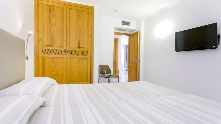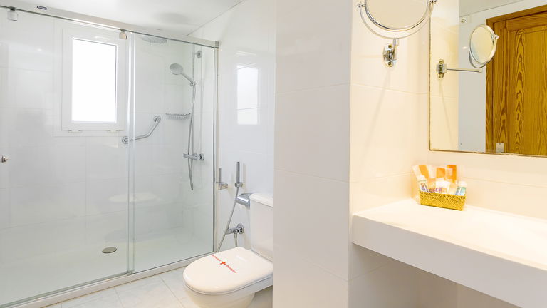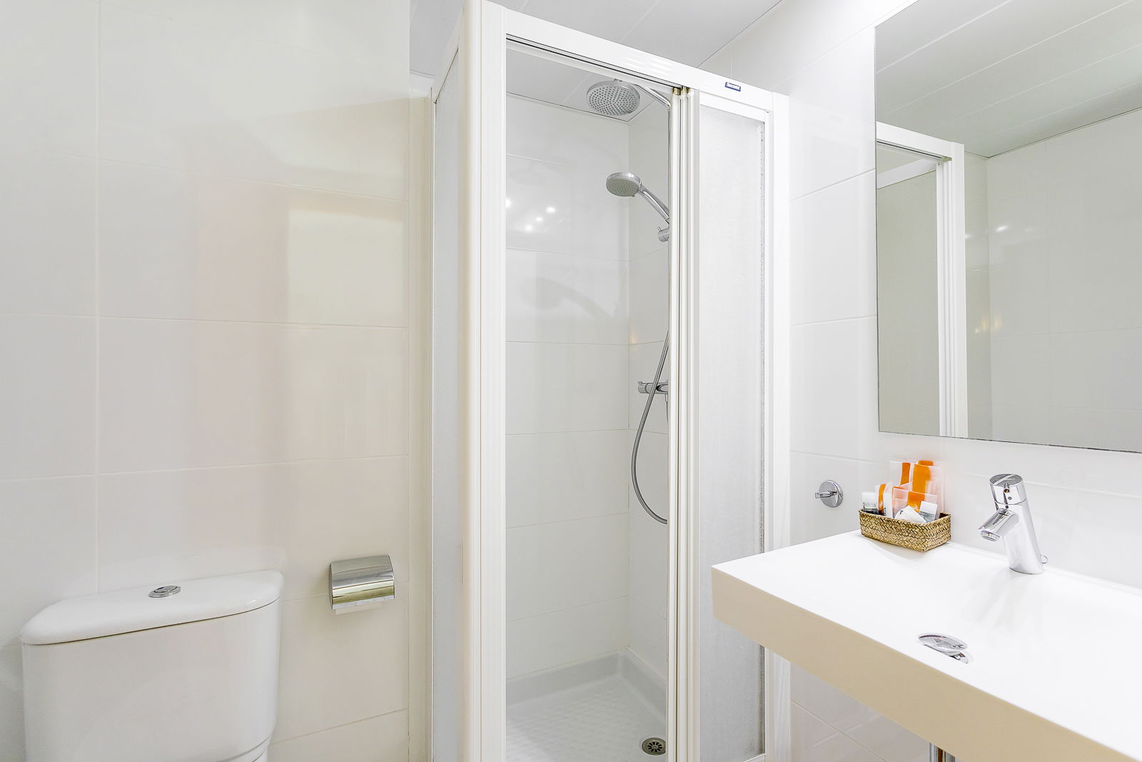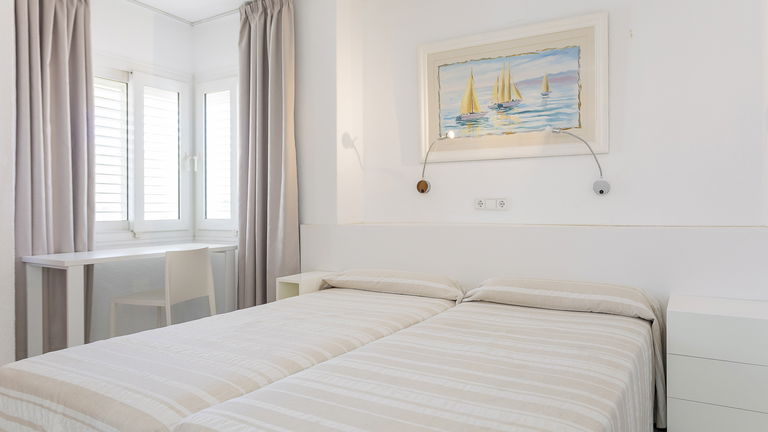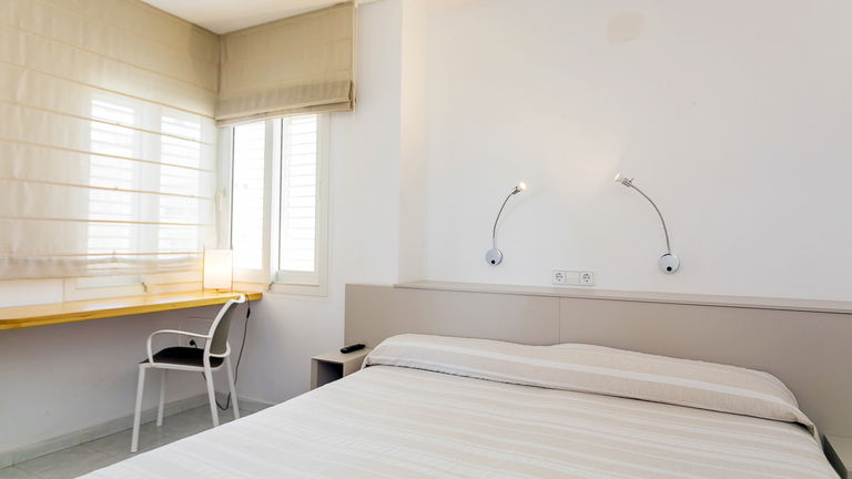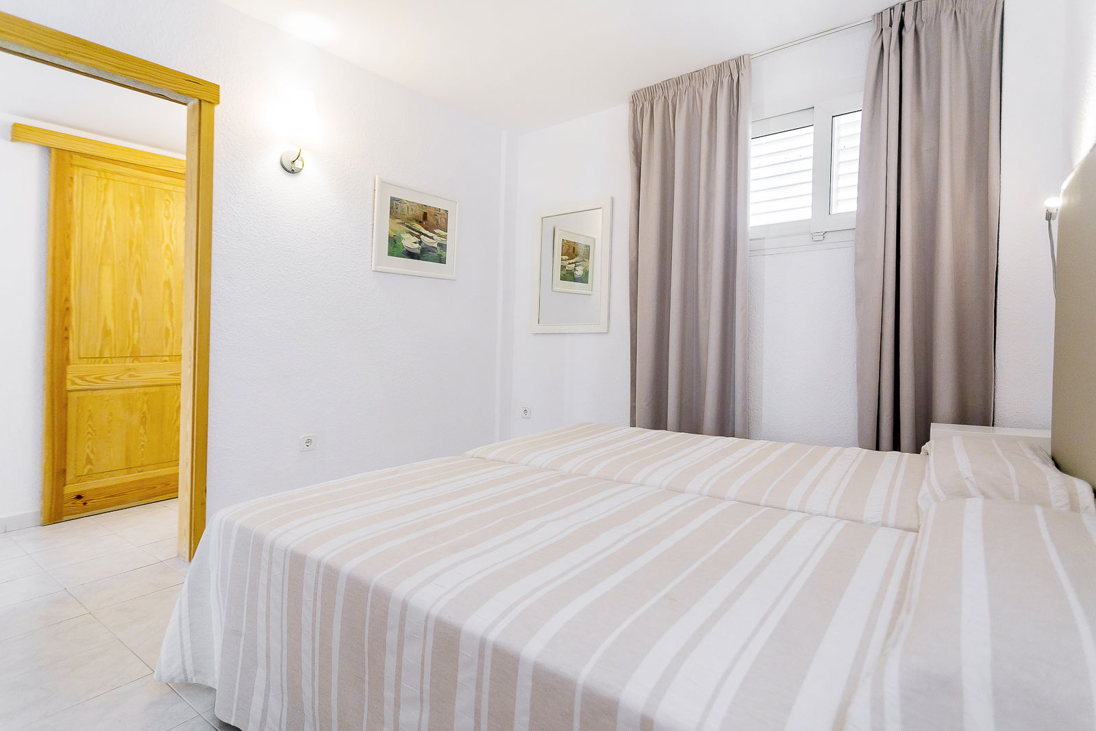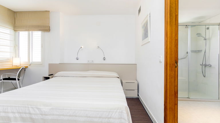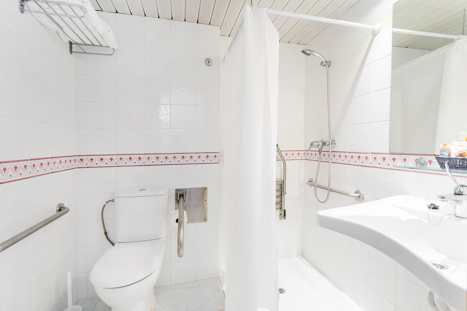 Apartamento adaptado para personas con movilidad reducida. Disponible para personas mayores o personas con movilidad reducida que necesiten espacio. Apartamento de 64 m² de dos dormitorios (4 camas separadas o cama de matrimonio, según petición), salón con un sofá, cocina completa, comedor, baño con bañera y baño con ducha adaptado, TV de pantalla plana con satélite, teléfono, caja fuerte, wifi gratis, servicio de limpieza diaria, nevera y amenities completos (gel, champú). Ideal para familias o amigos. Este tipo de apartamentos están pensados para poder desplazarse por ellos sin muebles por medio que sortear y con una amplitud especial, tanto en la puerta de acceso (puerta corredora) como en la puerta del baño. El baño, a su vez, cuenta con la puerta de acceso más amplia, un espacio interior para poder desplazarse sin obstáculos y acceder con comodidad al lavabo o ducha. También hemos pensado en la mejor adaptación con una silla en la ducha y barras en ducha y baño.