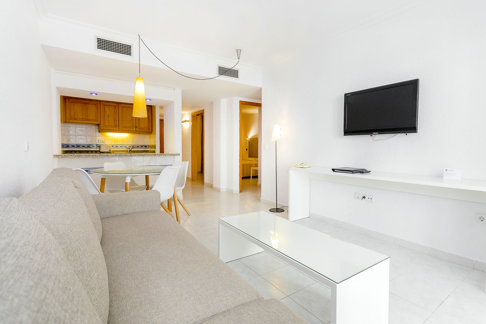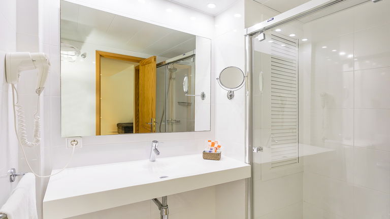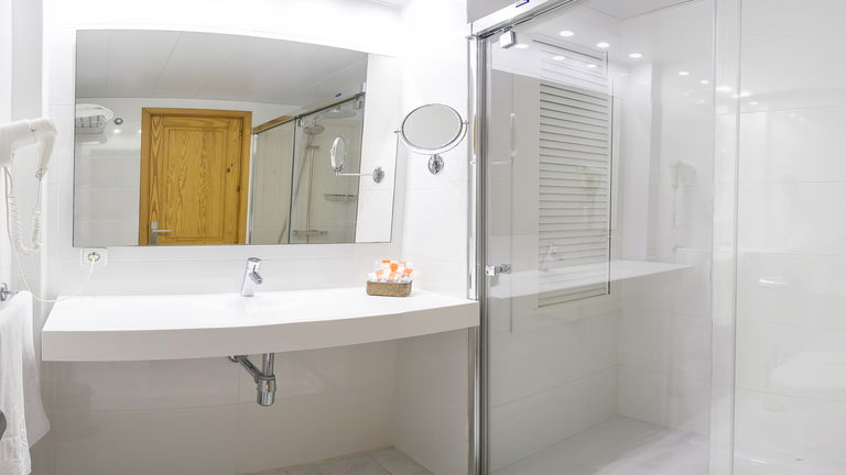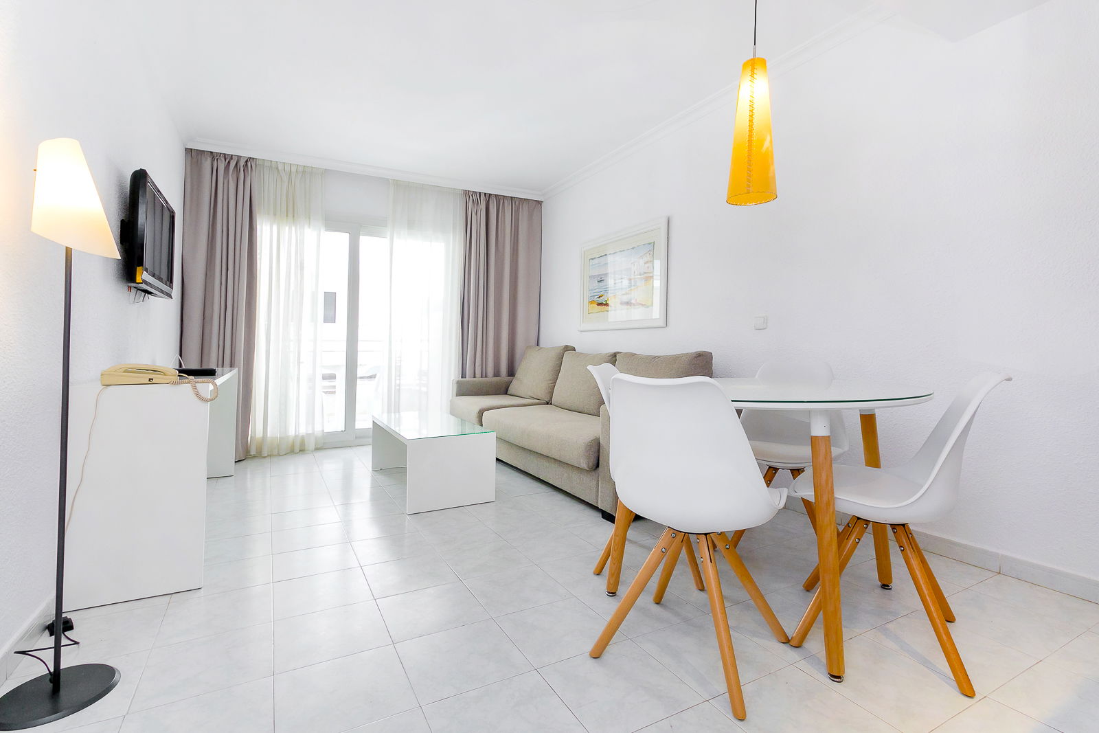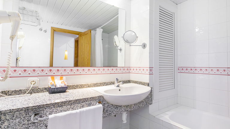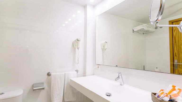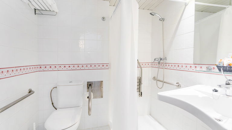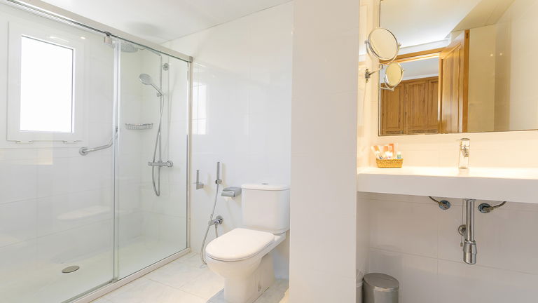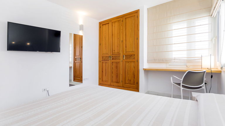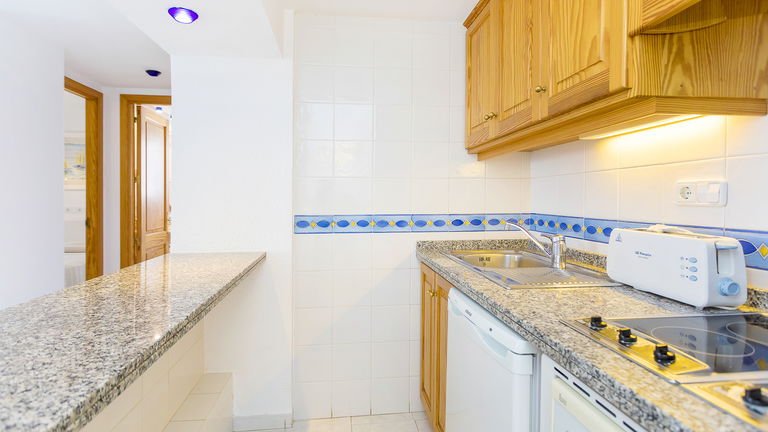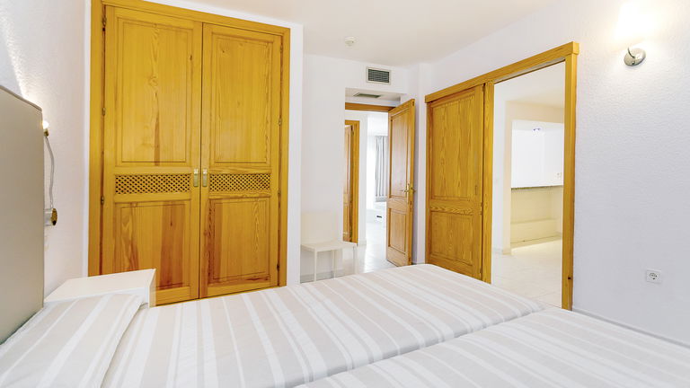Apartamento adaptado para personas con movilidad reducida. Disponible para personas mayores o personas con movilidad reducida que necesiten espacio. Apartamento de 64 m² de dos dormitorios (4 camas separadas o cama de matrimonio, según petición), salón con un sofá, cocina completa, comedor, baño con bañera y baño con ducha adaptado, TV de pantalla plana con satélite, teléfono, caja fuerte, wifi gratis, servicio de limpieza diaria, nevera y amenities completos (gel, champú). Ideal para familias o amigos. Este tipo de apartamentos están pensados para poder desplazarse por ellos sin muebles por medio que sortear y con una amplitud especial, tanto en la puerta de acceso (puerta corredora) como en la puerta del baño. El baño, a su vez, cuenta con la puerta de acceso más amplia, un espacio interior para poder desplazarse sin obstáculos y acceder con comodidad al lavabo o ducha. También hemos pensado en la mejor adaptación con una silla en la ducha y barras en ducha y baño.