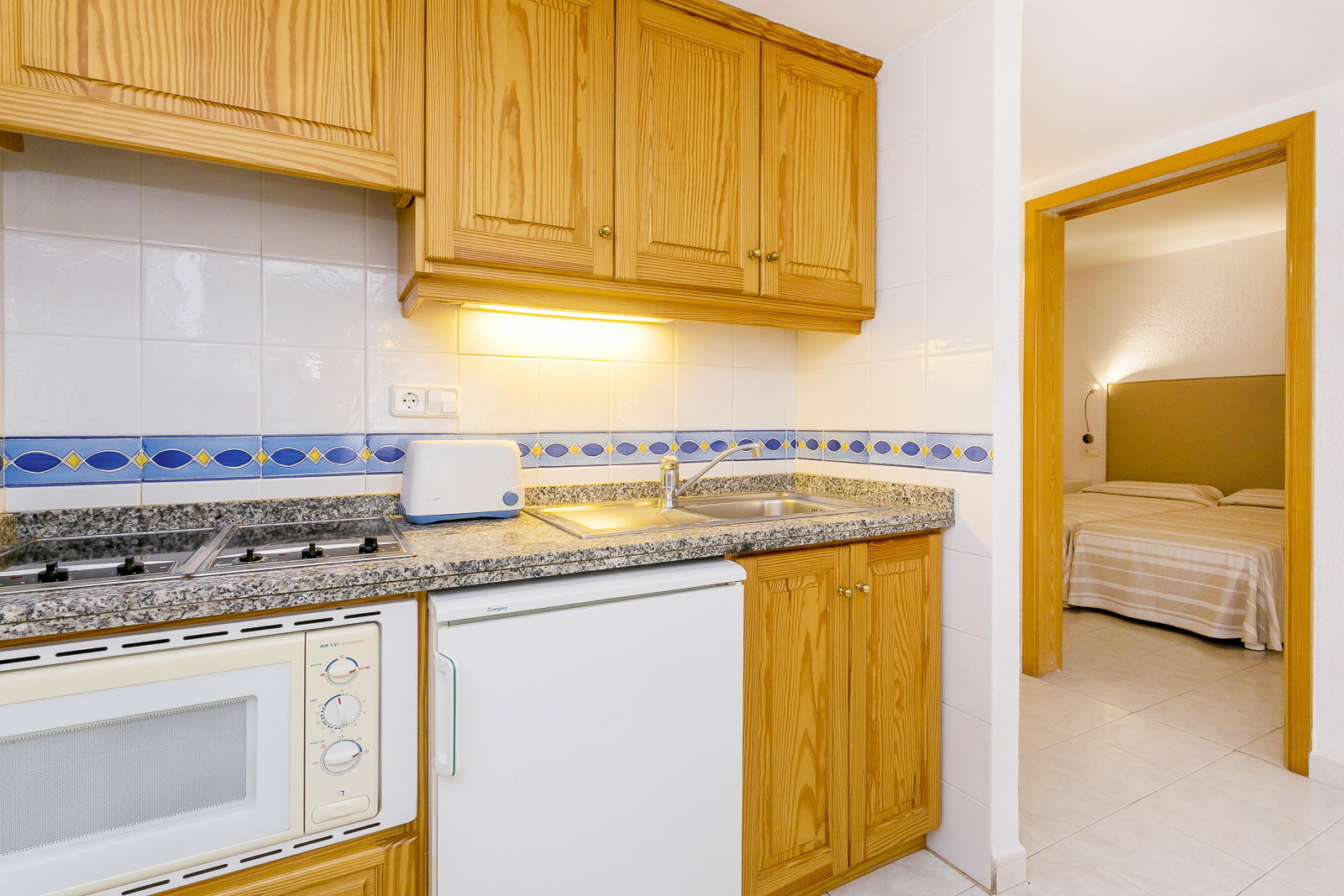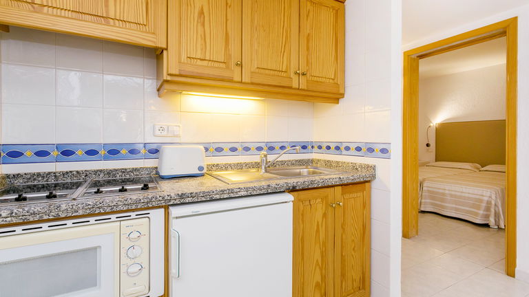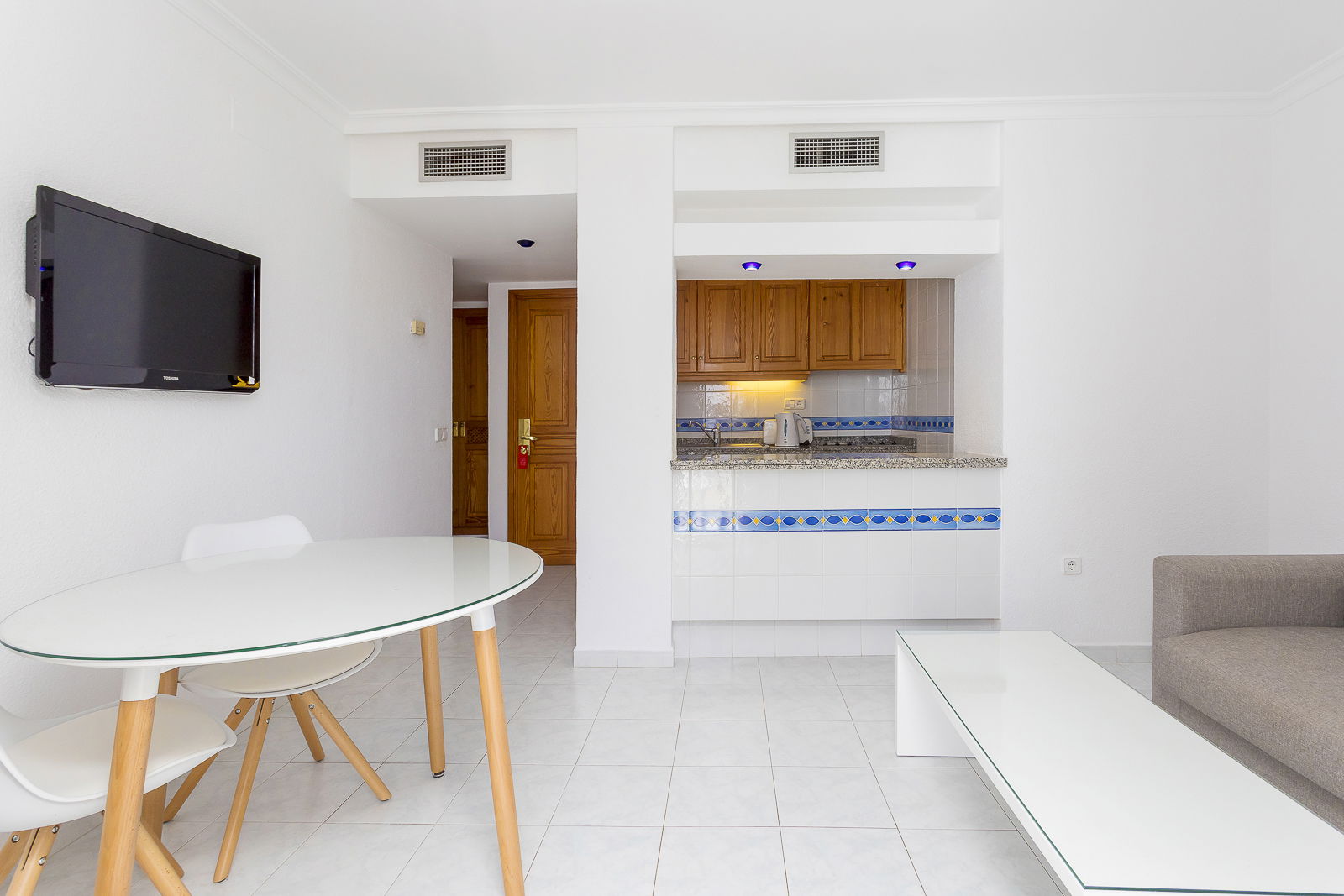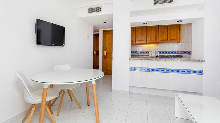 Confortable y con todos los servicios. Una opción económica e ideal para disfrutar una estancia en pareja o solo. Apartamento de 43 m2 de un dormitorio (2 camas separadas o cama de matrimonio según petición), baño, salon con un sofá, cocina completa, terraza con vistas a la ciudad, caja fuerte, aire acondicionado / calefaccion, Amenities (gel, champú), TV pantalla plana con satélite, teléfono, internet wifi gratis, servicio de limpieza diaria.
