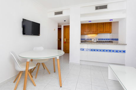 Confortable y con todos los servicios. Una opción económica e ideal para disfrutar una estancia en pareja o solo. Apartamento de 43 m2 de un dormitorio (2 camas separadas o cama de matrimonio según petición), baño, salon con un sofá, cocina completa, terraza con vistas a la ciudad, caja fuerte, aire acondicionado / calefaccion, Amenities (gel, champú), TV pantalla plana con satélite, teléfono, internet wifi gratis, servicio de limpieza diaria.